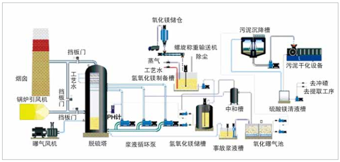 目前,已經商業化運行的濕法脫硫工藝中氧化鎂脫硫技術是一種前景較好的脫硫技術。該工藝較為成熟,投資少、結構簡